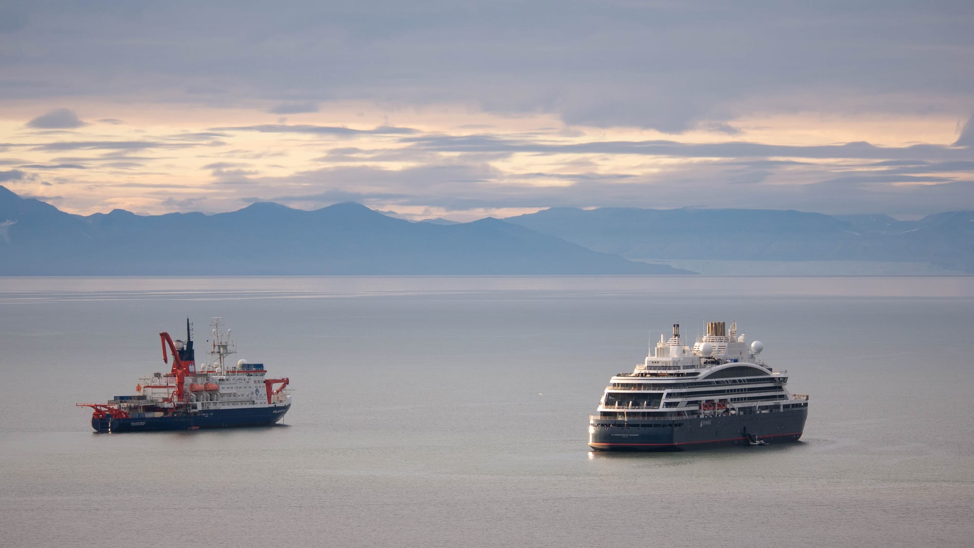 Nach einem frühen Start in Hamburg sind wir nach etwa acht Stunden im Landeanflug auf Longyearbyen, Spitzbergen. Wir, das sind meine Kollegen Sascha und Cristian und ich, Lina. Unter uns liegt im Fjord die Le Commandant Charcot vor Anker, mit der wir in drei Tagen in die zentrale Arktis fahren werden. Neben der Le Commandant Charcot liegt momentan auch die Polarstern hier im Fjord, die in den nächsten Tagen ebenfalls wieder in die Arktis aufbrechen wird.